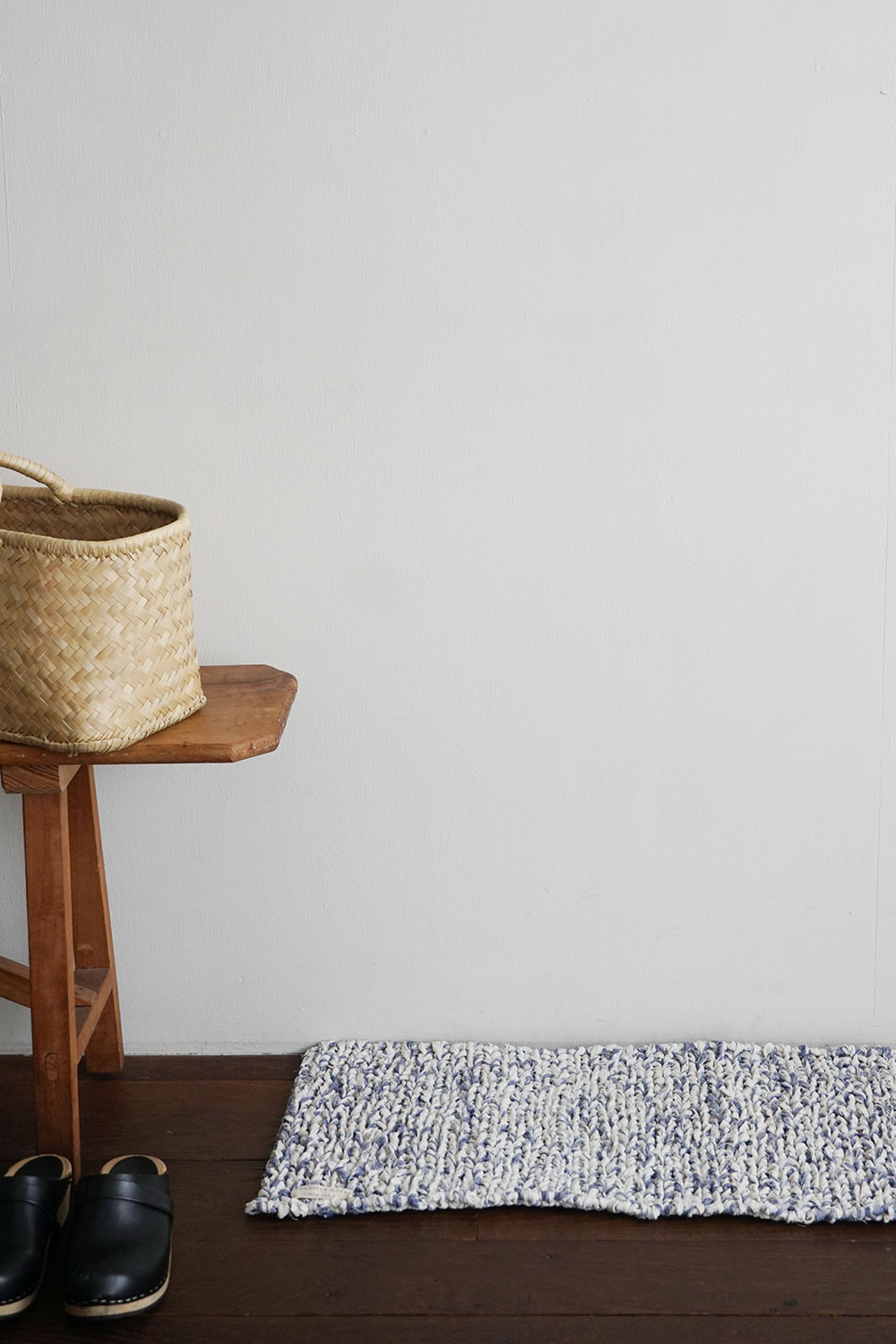 LINEN KNITTED FLOOR MAT BLUE WHITE STRIPE