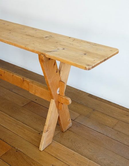baileysから届いたスウェーデンの組み立て式テーブル。細長い形を生かして、飾り棚や、お店の什器として。使わないときは棚板を外して、足を分解できます。