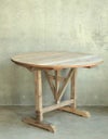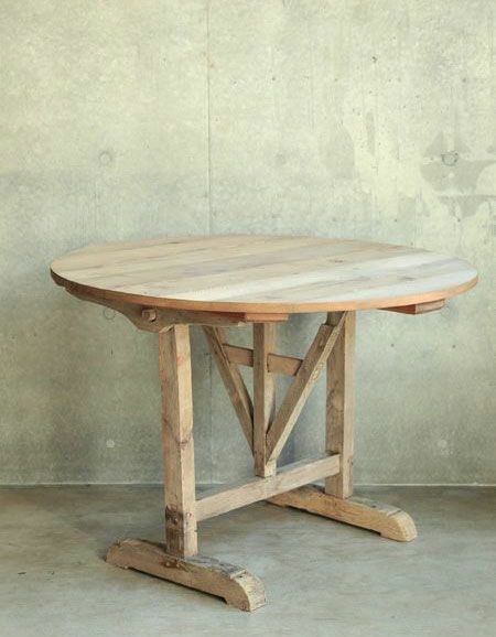 baileysから届いたフランスの折り畳み式サークルテーブル。2人~4人くらいのダイニングテーブルとして。使わないときは脚のパーツをくるっと回して、簡単に折り畳むことができます。