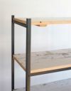 baileysオリジナルの枠と、塗装がいい感じにはげた棚板で作った雰囲気のあるシェルフ。食器棚、本棚、飾り棚など使い道はいろいろ。