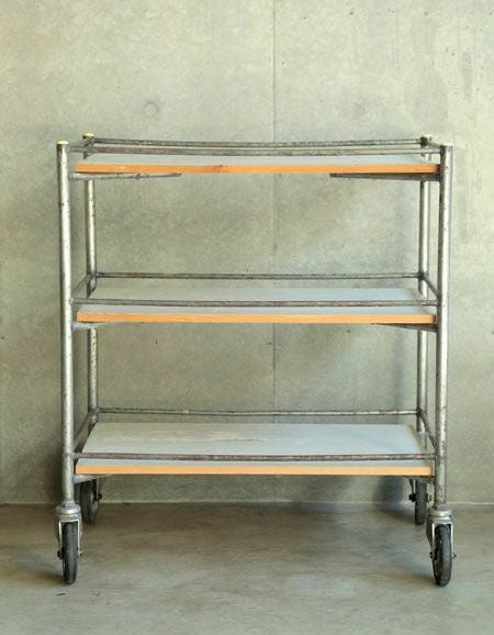baileysオリジナルの枠と、白く塗装された木の棚板で作った雰囲気のあるシェルフ。食器棚、本棚、飾り棚など使い道はいろいろ。