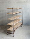 使い込まれた風合いの枠と棚板。食器棚、本棚、飾り棚など使い道はいろいろ。キャスター付きで移動もラクです。