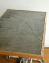 アンティークのミシン台。鏡面になっていて、ひびの部分を銀継ぎしてあります。