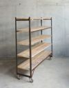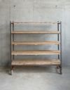 使い込まれた風合いの枠と棚板。食器棚、本棚、飾り棚など使い道はいろいろ。キャスター付きで移動もラクです。