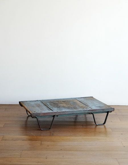 baileysから届いた無骨なローテーブル。脚の形が珍しい。ずっしり重量感があります。ディスプレイに。