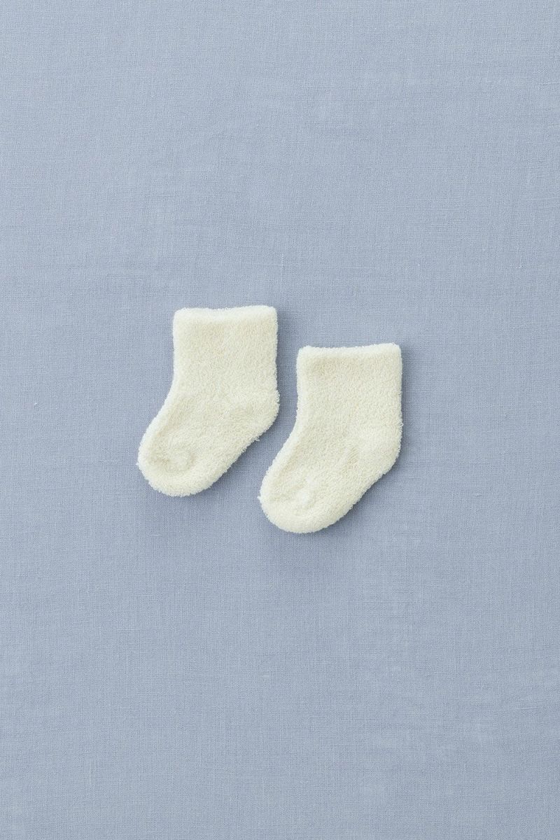 オーガニックコットンの糸を使用して編んだ、ふわふわのパイル編みのソックス。