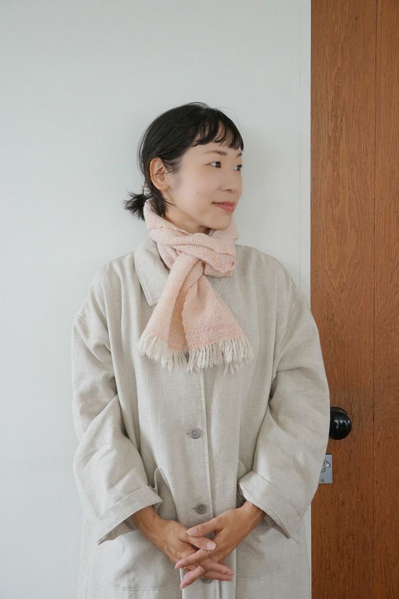ホームスパンのネックウェアはふっくらと空気が含まれており、丁寧に織られた生地は軽くてあたたか、そして柔らかな風合いです。