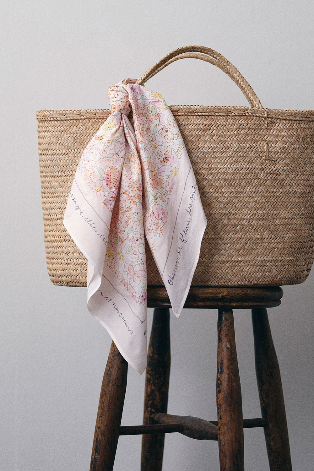 薄くて軽やかなコットン生地にイザベルボワノさんの描いた図柄をプリントしたスカーフ。