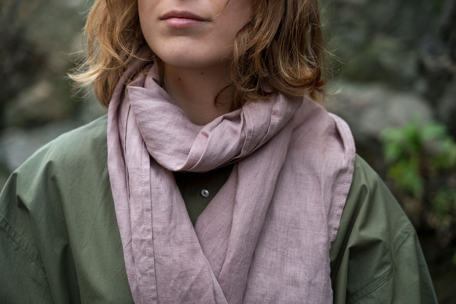 薄地のリネンを軽やかなスカーフに仕立てました。