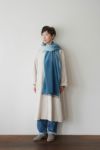 首に巻かないときは、かごバッグの目隠しに掛けたり。軽くてかさばらないので、つい毎日のように持ち歩きたくなる一枚です。