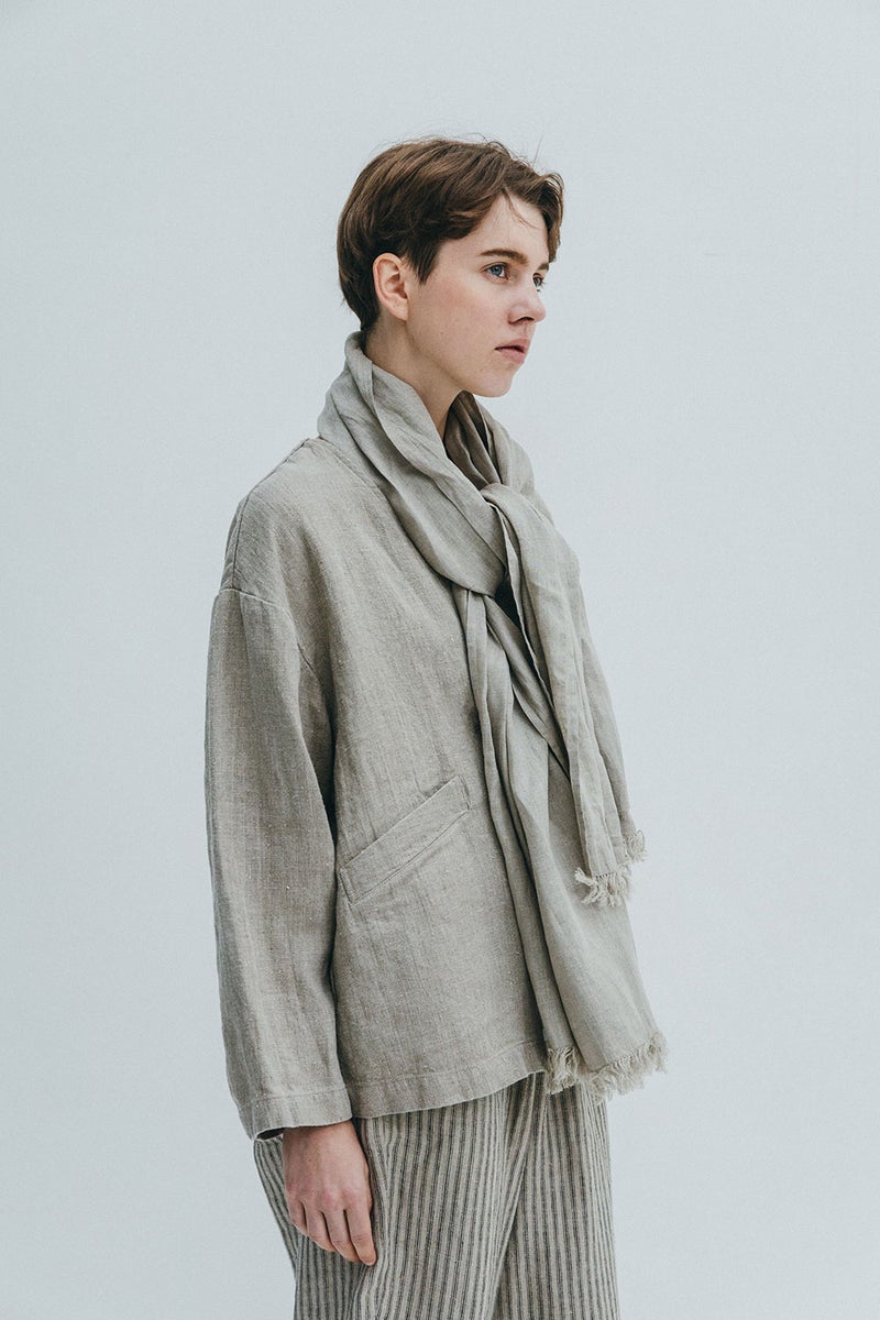 薄地のリネンを軽やかなスカーフに仕立てました。