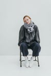 巻き方はいろいろ。首にくるくるっと巻いたり、大きさを生かしてショール代わりに使うのもおすすめです。