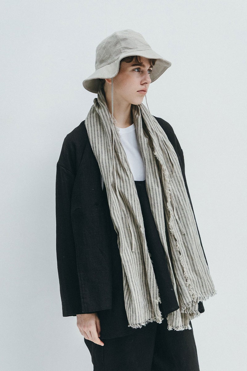 普通地のリネン生地をたっぷりと使って大判スカーフに仕立てました。