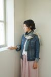 首に巻かないときは、かごバッグの目隠しに掛けたり。軽くてかさばらないので、つい毎日のように持ち歩きたくなる一枚です。