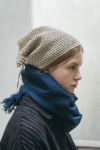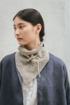<バンダナにもつけ襟風にも。コーディネートのアクセントになるニットスカーフ>リネンの糸で繊細に編まれたニットスカーフ。一点一点リトアニアで手編みされています。