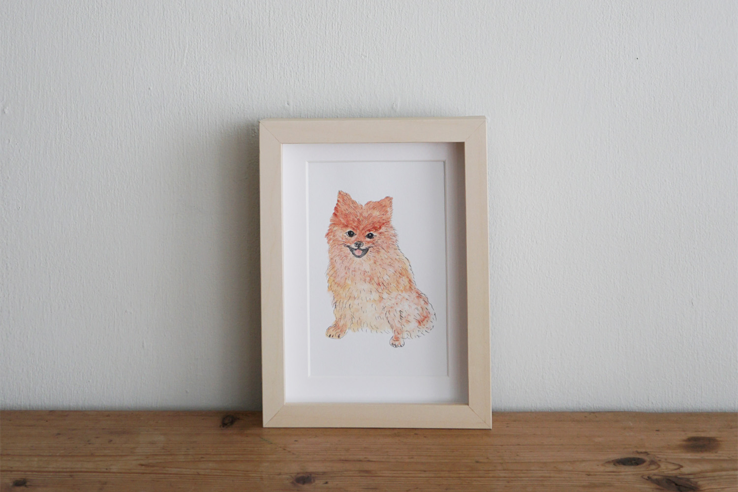 やわらかな毛並みまで伝わってくるような、ふわふわのスピッツを描いた1枚。