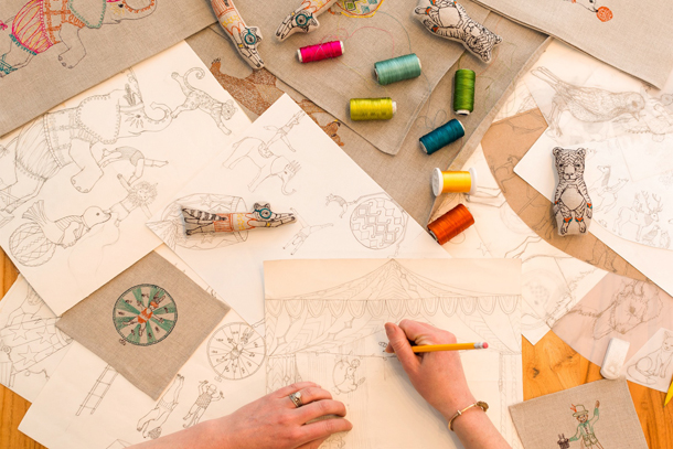 CORAL & TUSK のステファニーと一緒に動物の手刺繍をするワークショップ