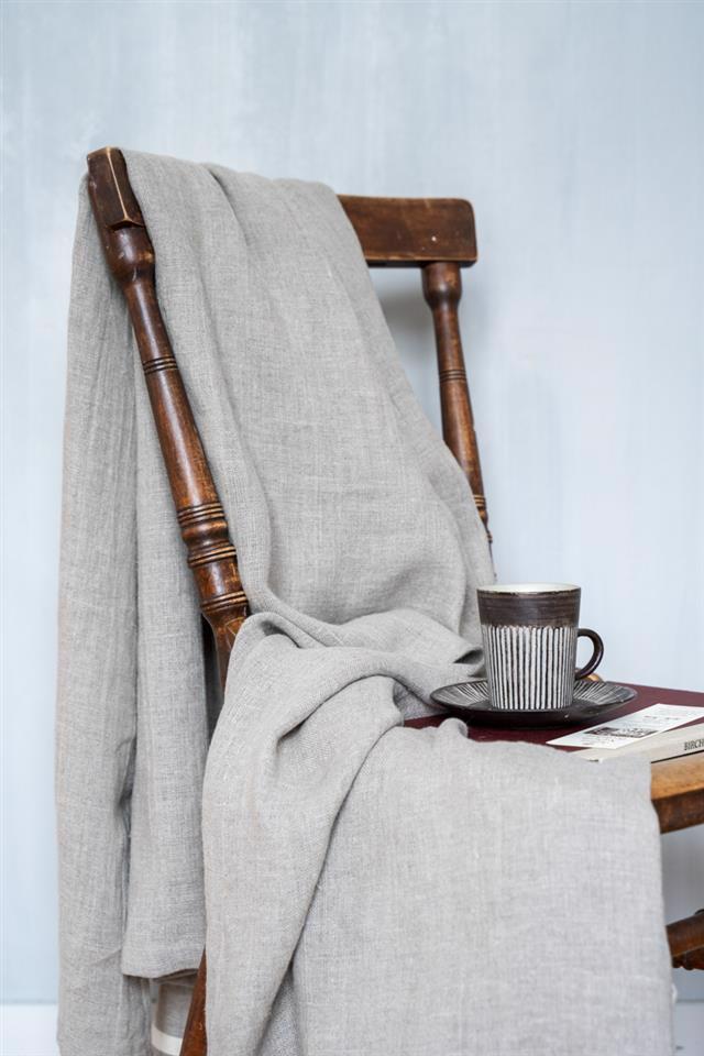 厚地のリネン生地で仕立てたブランケット。