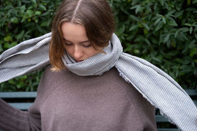 たっぷりした大きさは、スカーフとしてだけでなく、肩掛けや膝掛け、お部屋のインテリアに取り入れても素敵なのですよ。
