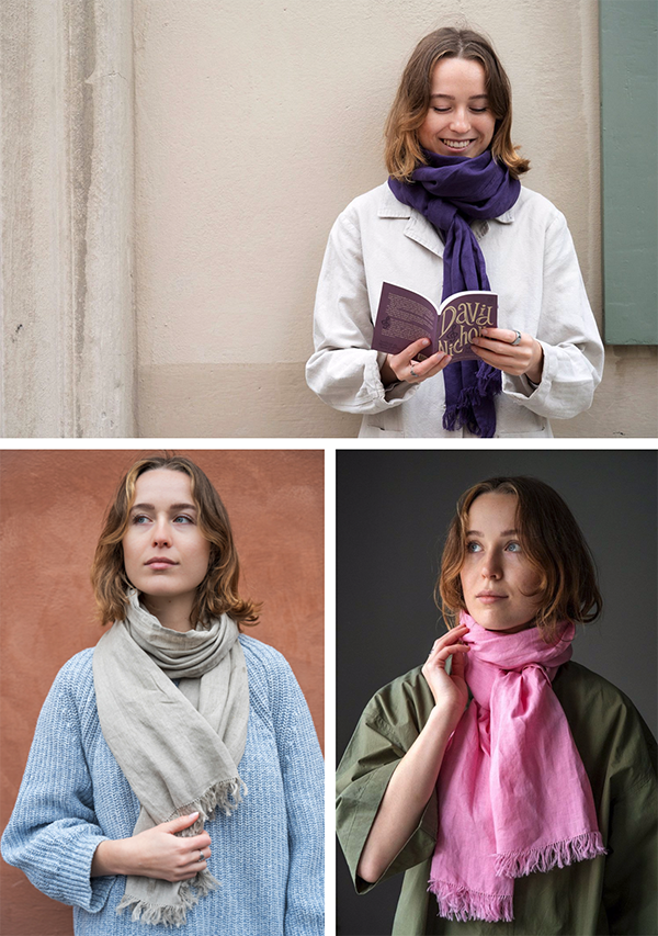 トゥズ フリンジスカーフより少し幅が狭く、薄地のリネンで仕立てたロセリエ スカーフ。
