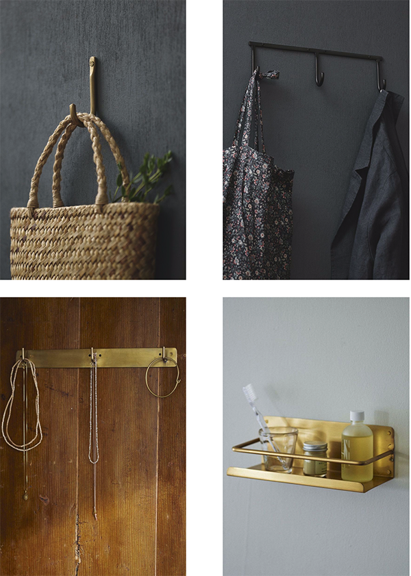 壁のスペースを利用して、床に物を置かないだけでお部屋がぐっときれいになります。例えばキッチンなら、クロスやミトン、よく使うキッチンツールをフックに掛けるだけで動線がスムーズに。