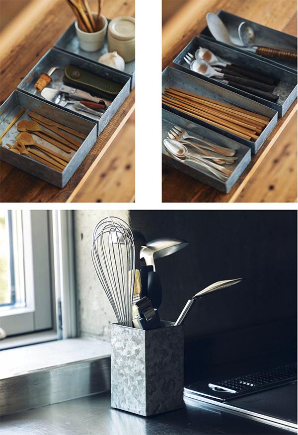 キッチンでカトラリーを分けて入れたり、デスクの上でステーショナリーをまとめたり。使い道はいろいろです。