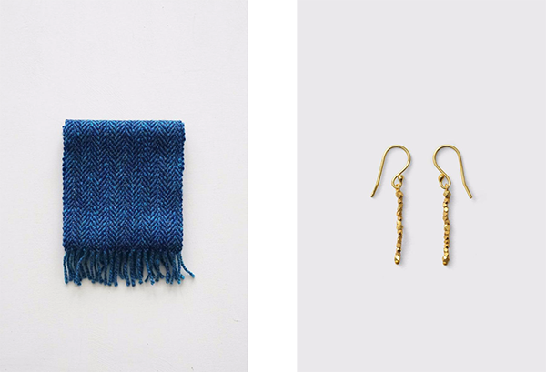 例えばみちのくあかね会のふんわりと暖かなマフラーや、ブラスのビーズが連なるやさしい輝きのピアスなど。