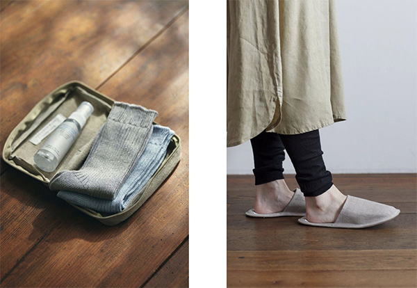 冬休みの旅行におすすめなのが、収納力のあるセヴァン ポーチと、履き心地のいいリネン スリッパ。