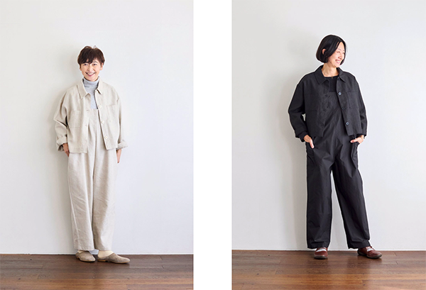 メルドラ サロペットのコーディネイトに同じウールリネンのリリヤ ショートジャケットを羽織るととっても素敵です。