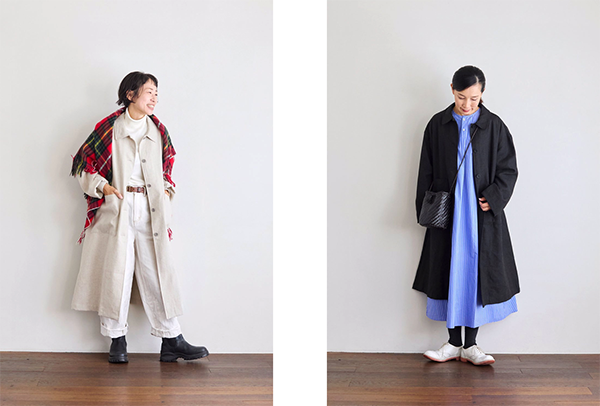 あわせる小物や重ね着の仕方で、同じ服でも印象がガラリと変わるのも楽しいところ。