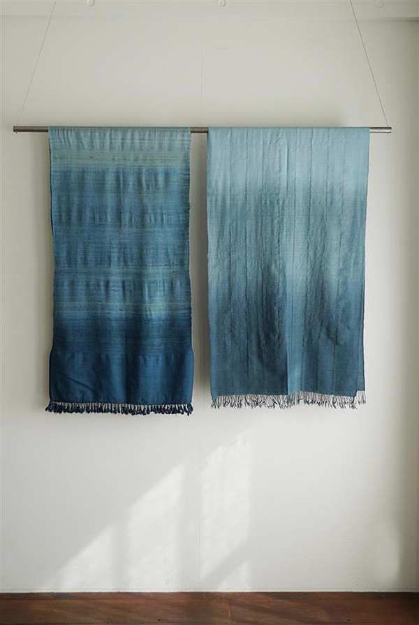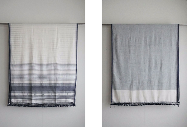 そんなインドの小さな村で織られたインディゴ染めや草木染めの素敵な織物です。