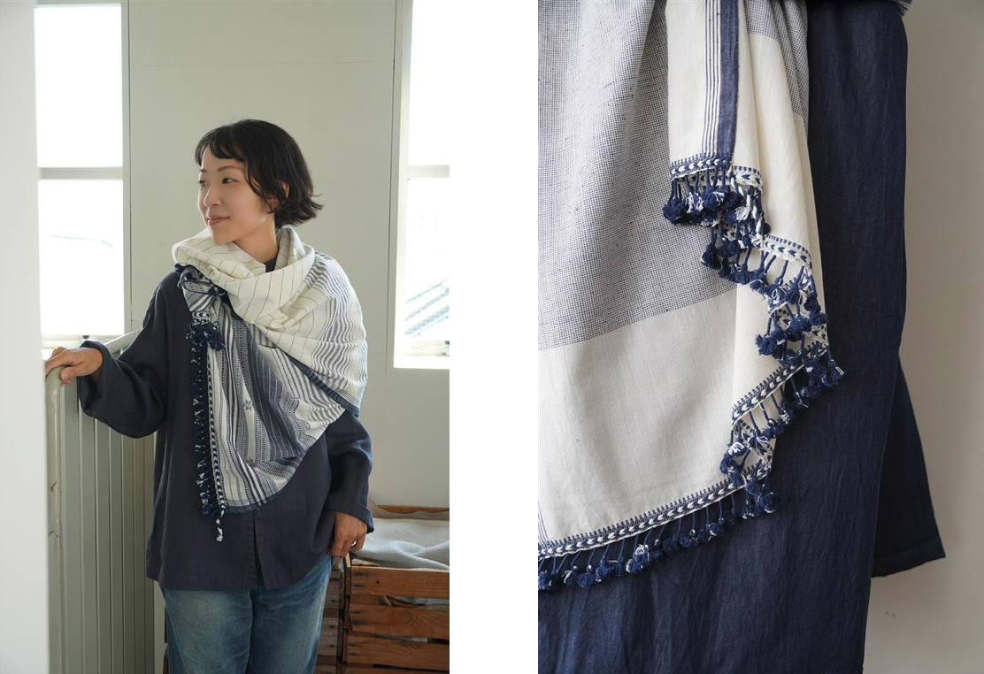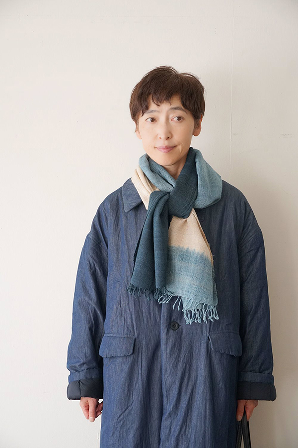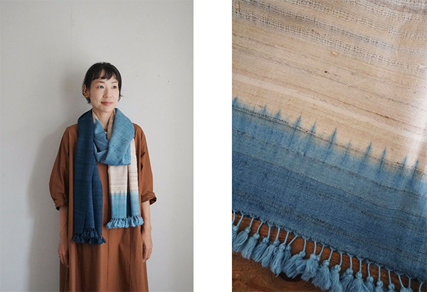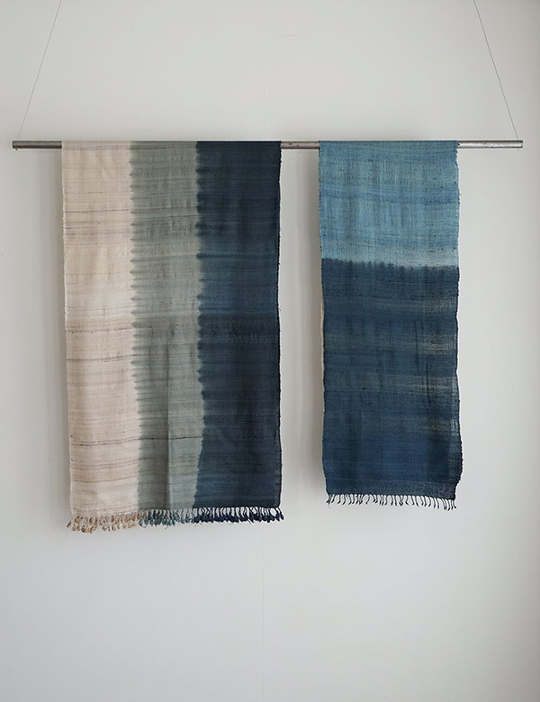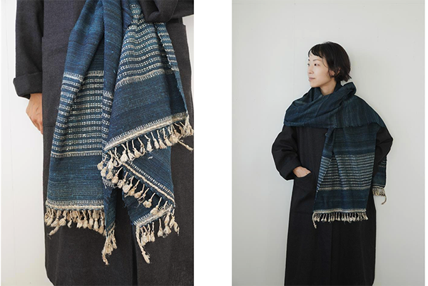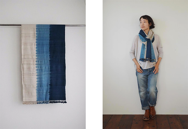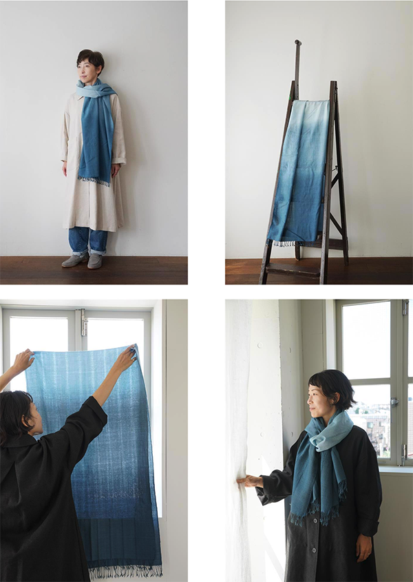 時間をかけて染め上がった糸は、織り機にかけられ、美しい織物へと姿を変えます。職人の手によってひとつひとつ丁寧に作られるスカーフは唯一無二。
