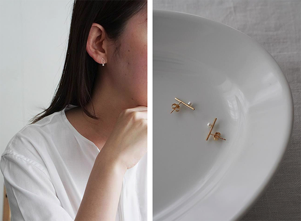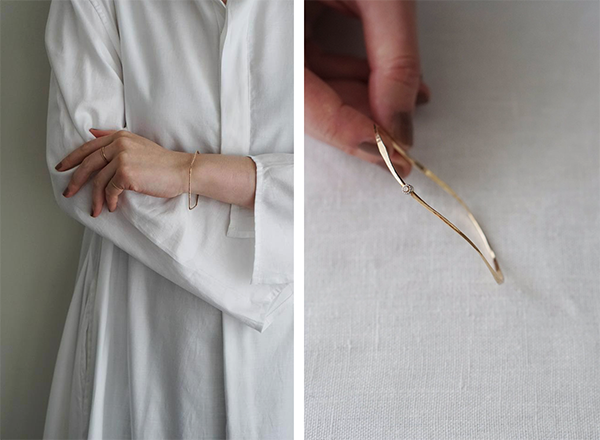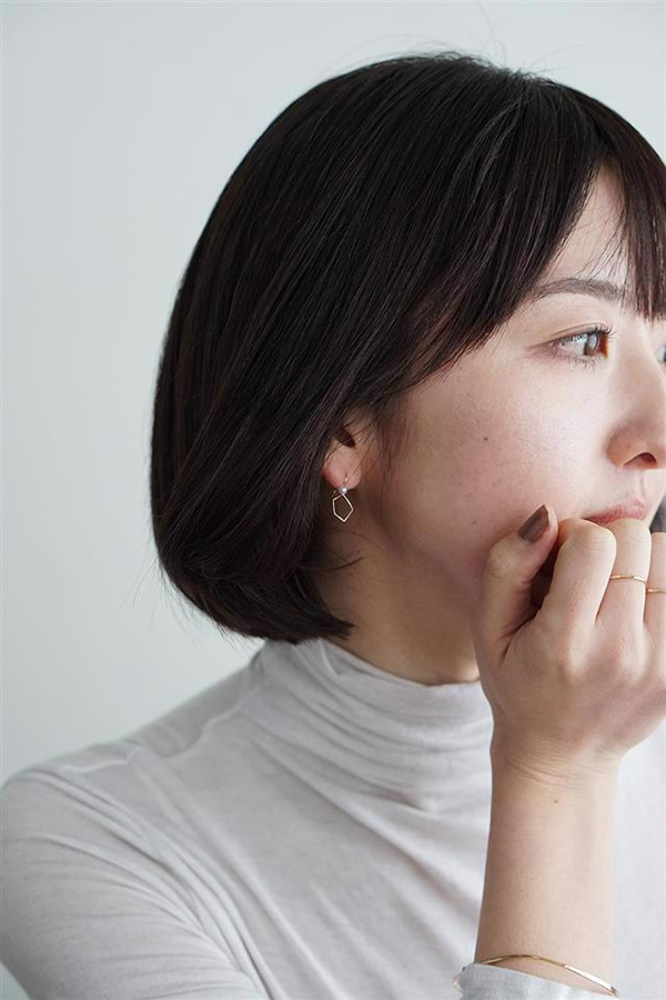 biulah のアクセサリーは、長崎にあるアトリエでデザイナーの福田さんがひとつひとつ丁寧に作られています。どれもシンプルなデザインなので、リングとバングル、ピアスとネックレス、重ねてつけるとより魅力的!