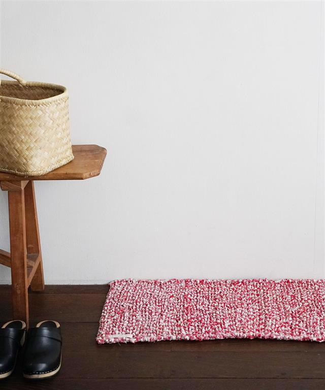 リネン製品をつくる過程で生まれたはぎれを編み上げた、ニットマット。