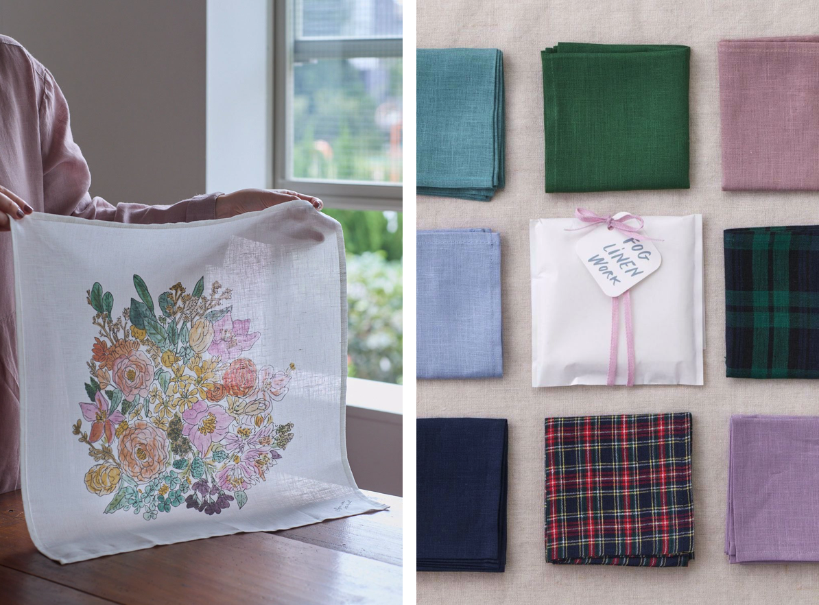 fogのリネンハンカチは、女性にも男性にも気軽に贈れる小さなギフトにぴったり。