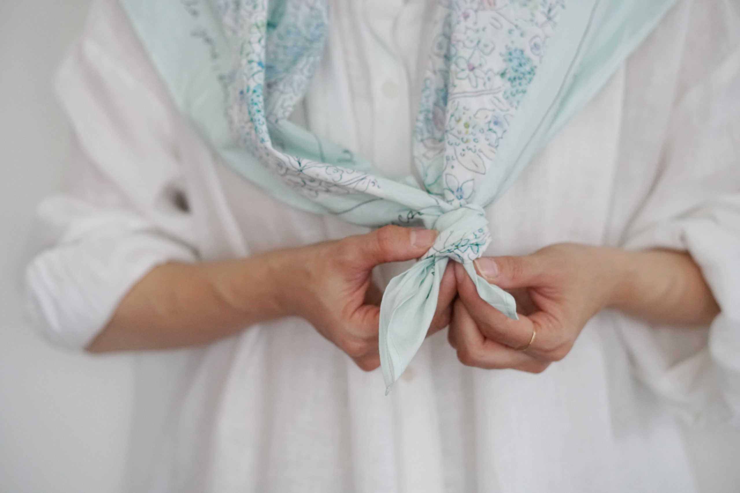 今日は fog スタッフの大桃がスカーフの巻き方をご紹介します。