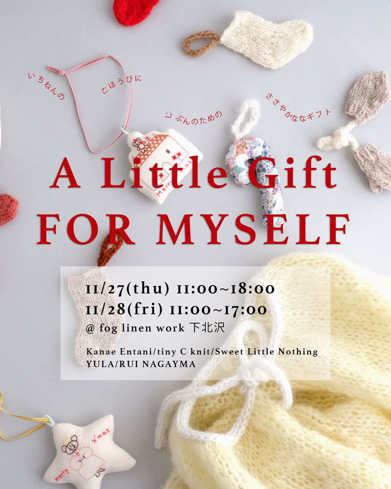 刺繍のクッションや手編みのオーナメント、肌触りの良いニット、ザクザクのおいしくてやさしいスコーンなど。イベントに合わせて、各ブランドが特別なアイテムをご用意くださるそう。一年のしめくくりに、“じぶんのための小さなギフト”を見つけにいらしてください。