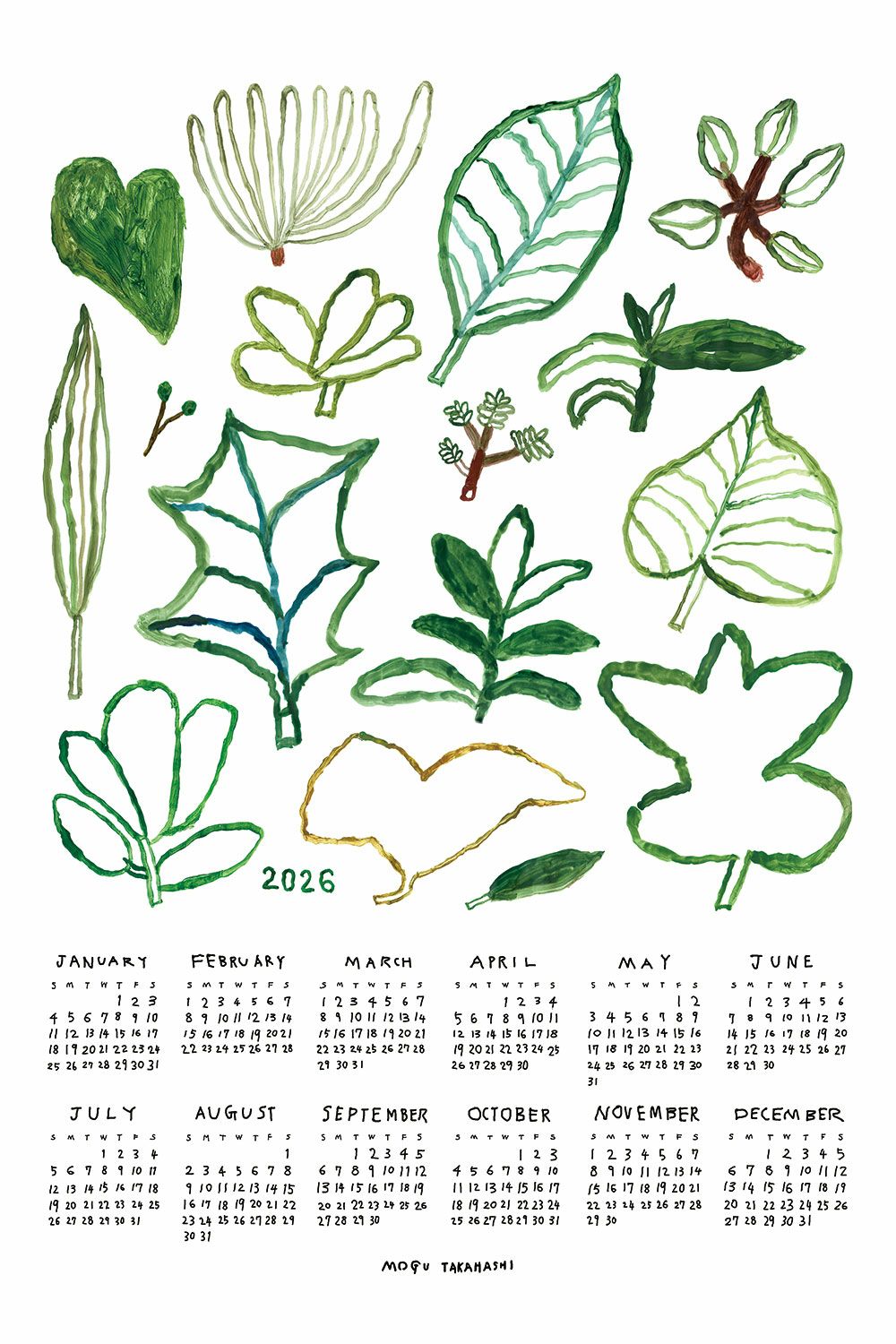 2026 リネン カレンダー みどりの植物たち