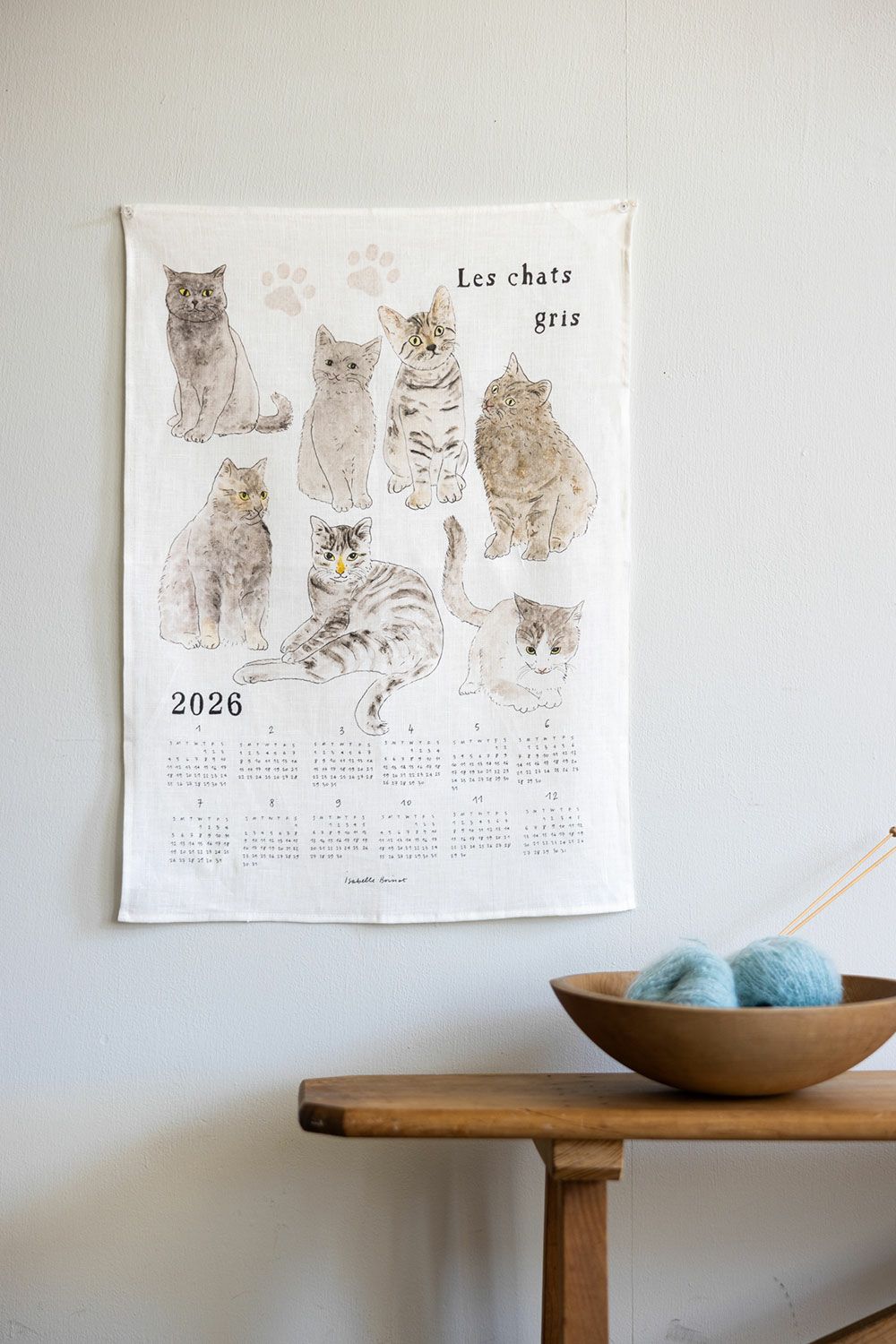 2026 リネン カレンダー グレーの猫たち いろいろ