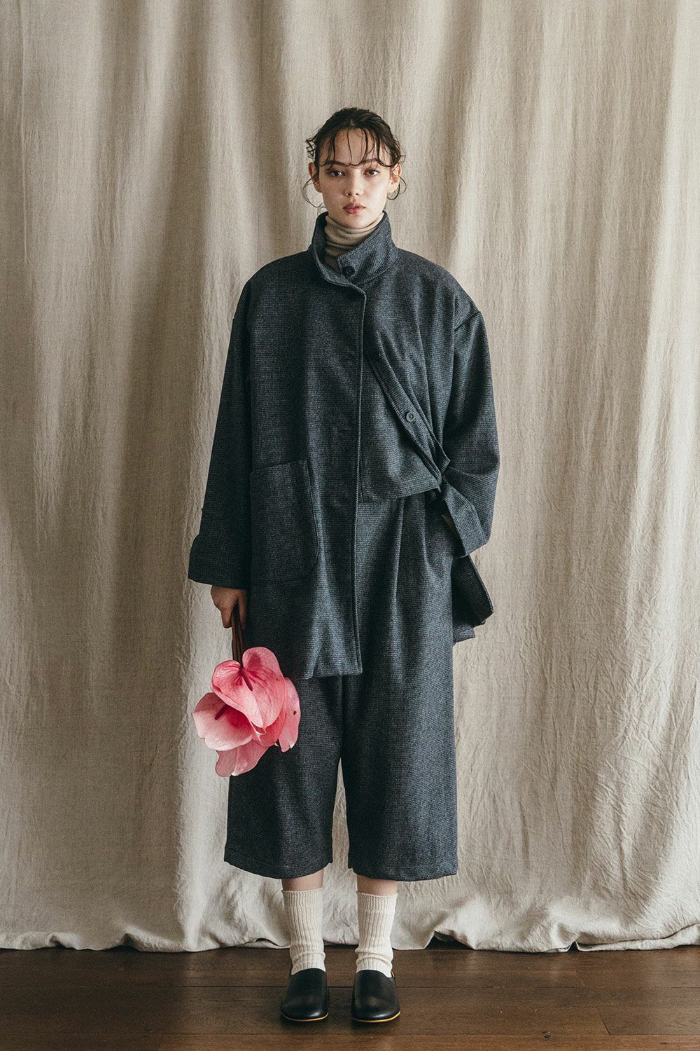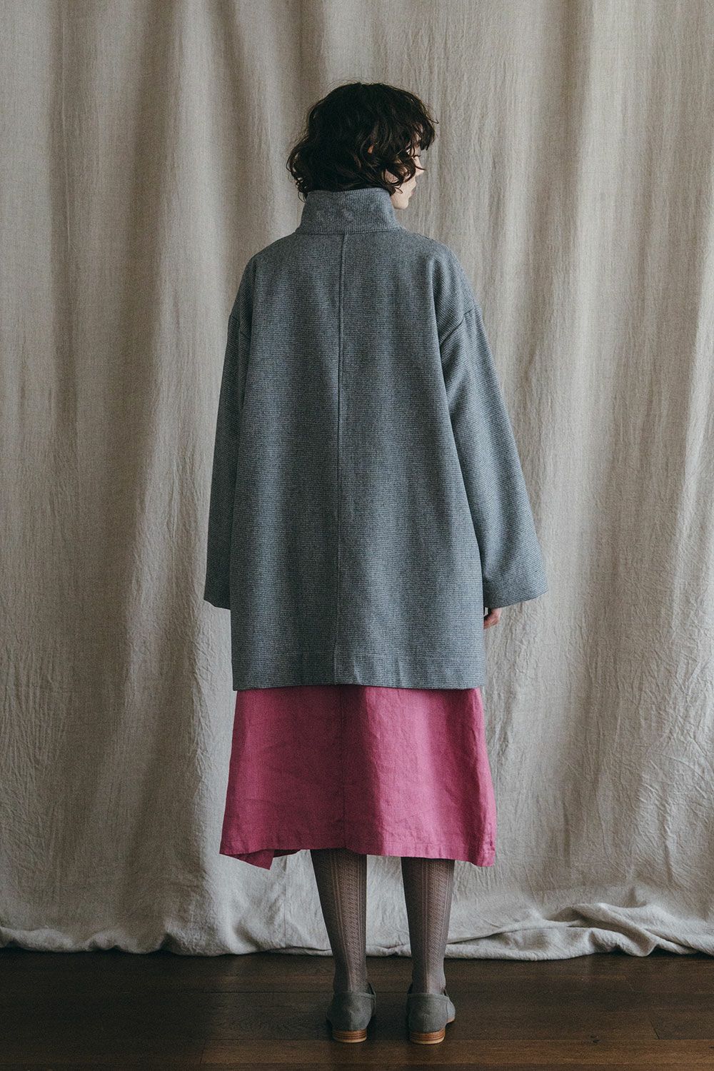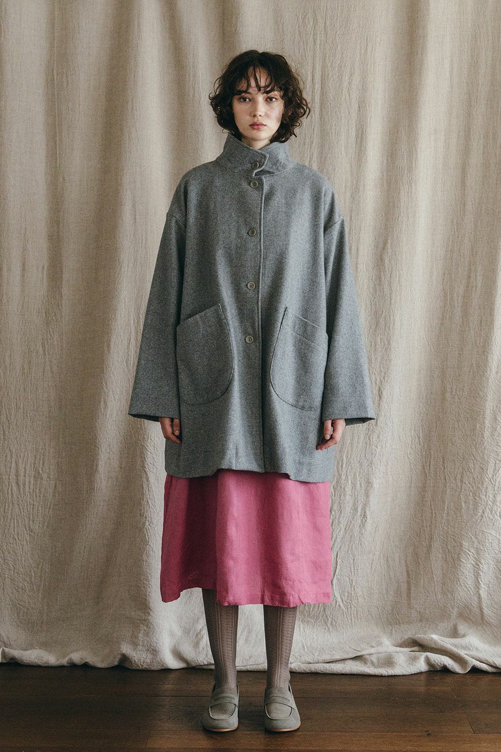 ズィエマ スタンドカラーコート ウール グレーチェック